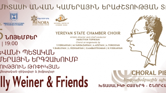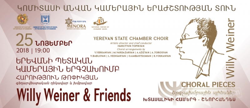 Նոյեմբերի 25-ին, ժ. 19:00 Կոմիտասի անվան կամերային երաժշտության տանը տեղի կունենա Երևանի պետական կամերային երգչախմբի համերգը և կոմպոզիտոր Վիլլի Վայների երգչախմբային ստեղծագործությունների «Վիլլի Վայներ և ընկերներ» (“Willy Weiner & Friends”) նոր ծրագրի և ձայնասկավառակիWilly Weiner & Friends”) նոր ծրագրի և ձայնասկավառակի”) նոր ծրագրի և ձայնասկավառակի շնորհանդեսը։