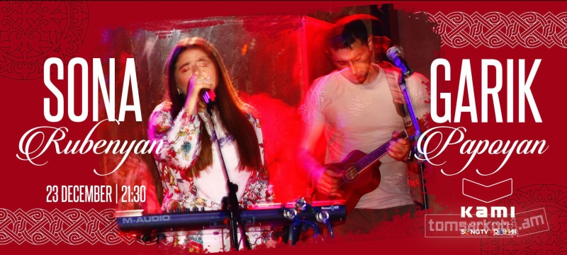 Դեկտեմբերի 23-ին ձմեռային տրամադրությամբ հանդիպում ենք KAMI Music Club-ում Գարիկ Պապոյանի և Սոնա Ռուբենյանի սպասված ու շատ սիրված համերգին՝ լսելու կենդանի երաժշտություն ու վայելելու հրաշք մթնոլորտը քաղաքի լավագույն ակումբում: