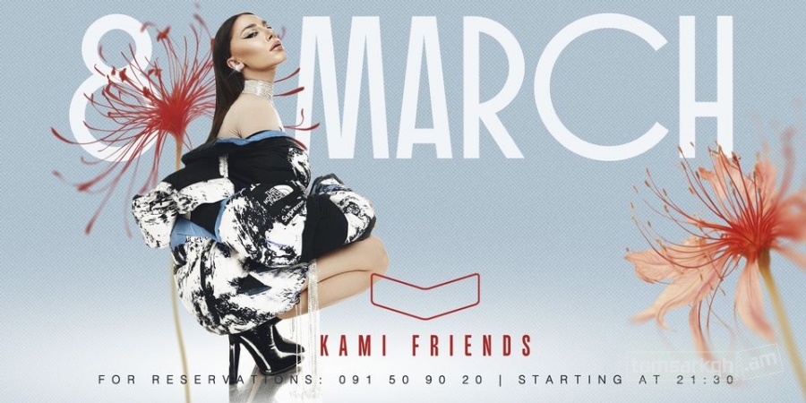 Սիրով հրավիրում ենք Կամի Ակումբ` լավ երաժշտությամբ և տոնական բարձր տրամադրությամբ միասին նշելու գարնանային ամենագեղեցիկ տոնը, Մարտի 8-ը։