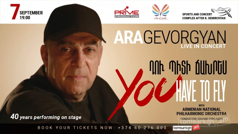 Սեպտեմբերի 7-ին ժ․ 19։00 Կարեն Դեմիրճյանի անվ. ՄՀ Համալիրում տեղի կունենա Հայ երաժիշտ, երգահան, երաժշտական պրոդյուսեր, Հայաստանի Վաստակավոր արտիստ ԱՐԱ ԳԵՎՈՐԳՅԱՆԻ մեծ մենահամերգը, Հայաստանի ազգային ֆիլհարմոնիկ նվագախմբի (դիրիժոր՝ Էդուարդ Թոփչյան) մասնակցությամբ։