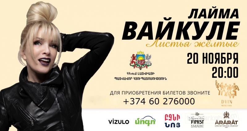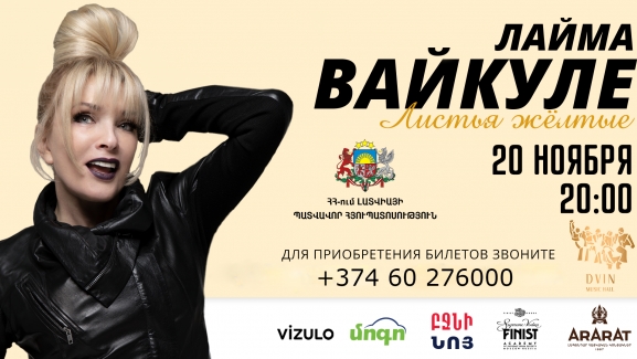 Ее можно узнать из тысячи, ее песни отличаются особым шармом и стилем, ее голос трогает самые тонкие струны души. Любимая Лайма Вайкуле в Ереване!