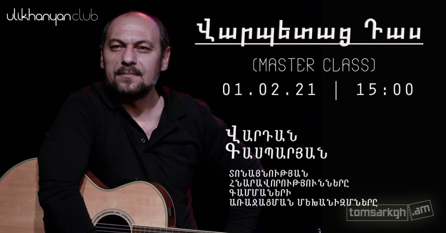 Առաջին վարպետաց դասը կներկայացնի պրոֆեսիոնալ երաժիշտ, կոմպոզիտոր, կիթառահար Վարդան Գասպարյան, ով հայ լսարանին հայտնի է իր Lighthouse New Jazz Project, Oaksenham և մի շարք այլ նախագծերից: