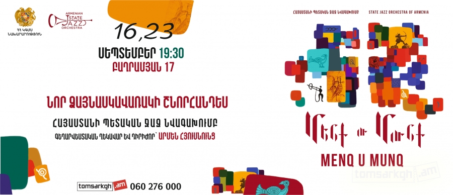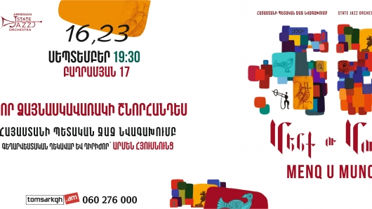 Join us at 19:30 on 16th and 23rd of September at the Union of Architects of Armenia where Armenian State Jazz Band will present their new album “Menq u Munq”.