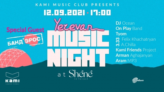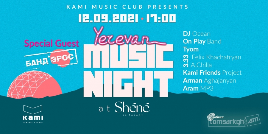 Կրկին վառ և անմոռանալի երաժշտական տոն KAMI Music Club-ից` Yerevan Music Night 2021, կրկին հանդիպումներ սիրված և ճանաչված երգիչների, բենդերի հետ և իհարկե, ունենք հատուկ հյուր` БАНД'ЭРОС խումբը: