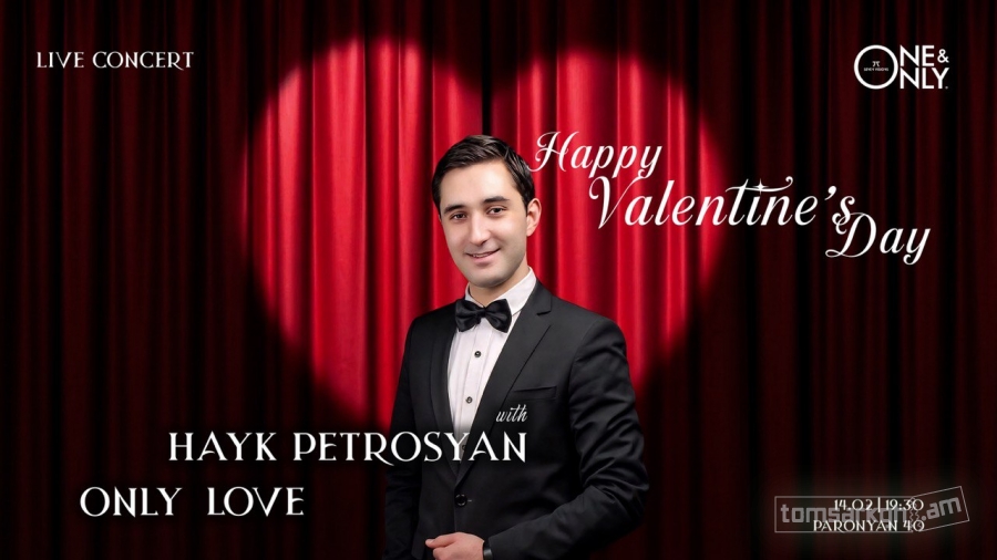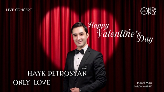 Spend February 14 in an atmosphere of love and warmth at One & Only Theatre. Hayk Petrosyan will perform for you, and with his beautiful renditions, the evening will become even more unforgettable.