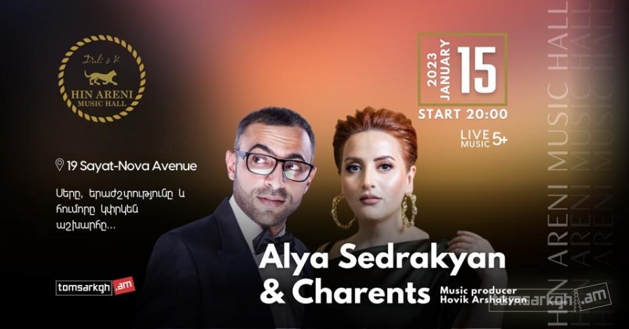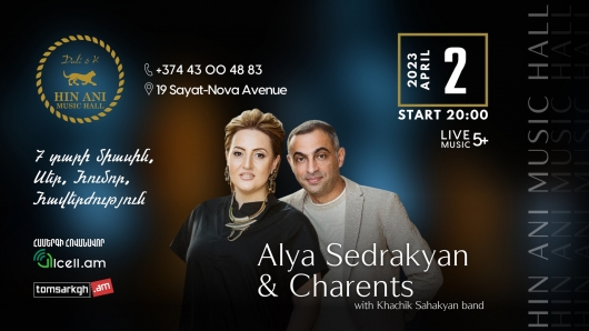 Ապրիլի 2-ին Հին Անի Մյուզիք Հոլլում կենդանի նվագակցությամբ հանդես կգան Ալյա Սեդրակյանը և Չարենցը`Խաչիկ Սահակյան բենդի հետ միասին: