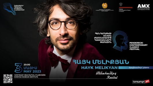 Պենդերեցկու անվան ժամանակակից դասականների երրորդ փառատոնի շրջանակում մայիսի 3-ին՝ ժամը 20։00-ին, Կոմիտասի թանգարան-ինստիտուտի համերգասրահում տեղի կունենա ճանաչված դաշնակահար Հայկ Մելիքյանի մենահամերգը։