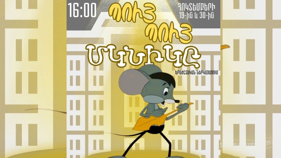 «Պույ-Պույ մկնիկը» Մանկական, երաժշտական ներկայացում՝ մեկ գործողությամբ։ Հնդստան անունով մի երկրում, ուր ապրում էին՝ մկնիկը, մորեխը, մացառախոզը, թիթեռներն ու կապիկները իսկական վեճ-պատերազմ է սկսվում, քանի որ ամեն մեկն իր մասին էր մտածում՝ անտեսելով դիմացիններին։ Երաժշտական, գունավոր, ուրախ եւ ուսուցողական ներկայացումը պատմում է այն մասին, թե ինչպես մկնիկը եւ իր ընկերները մի լավ դաս ստացան և հասկացան, որ պետք է համբերատար լինել ու հարգել դիմացինի կարծիքը։ Նրանք հասկացան նաև, որ միայն միասնականության ու սիրո շնորհիվ կարող են հաղթահարել դժվարություններն ու ապրեն խաղաղ։