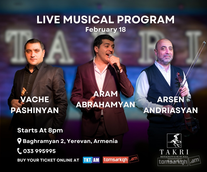 Live Musical Program at Takri with Vache Pashinyan Aram Abrahamyan Arsen Andriasyan