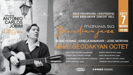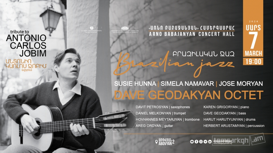 From the stage of the Aram Babajanyan Concert Hall, Dave Gyodakyan's Octet has prepared a Brazilian jazz spectacle on the eve of Women's Day. We are confident that during the evening, you will experience the full spectrum of emotions, from dreamy sounds to a strong desire to dance.