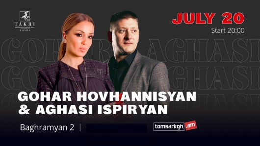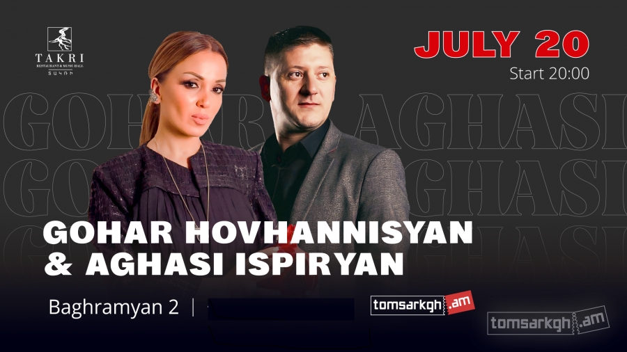 Հուլիսի 20-ին, ժողովրդական, ազգագրական երգի սիրահարներին հրավիրում ենք անկրկնելի համերգային երեկոյի։ Գոհար Հովհաննիսյան և Աղասի Իսպիրյան. արտիստներ, ում մասնակցությամբ ամեն երեկո վերածվում է ինքնատիպ մի տոնի։