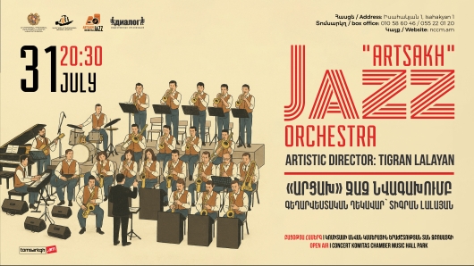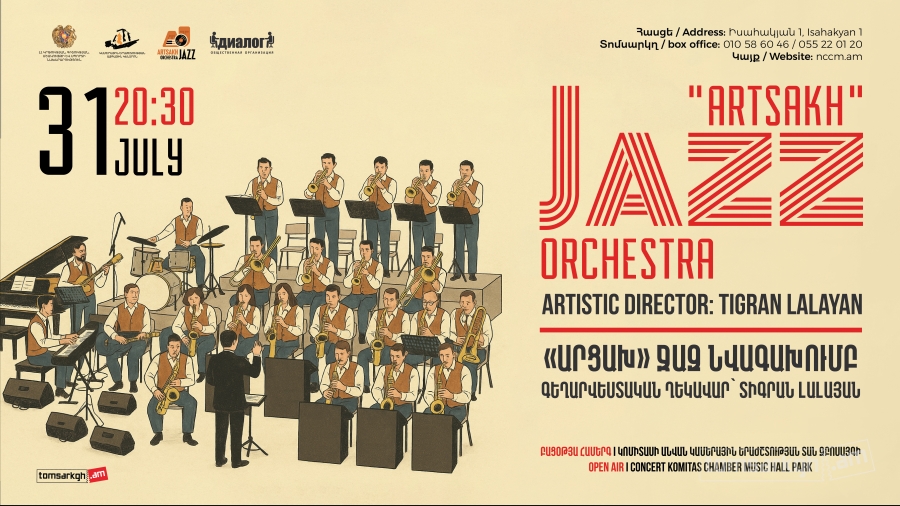 Հուլիսի 31-ին՝ ժամը 20:30-ին, Կոմիտասի անվան կամերային երաժշտության տան զբոսայգու բացօթյա բեմում հանդես կգա «Արցախ» ջազ նվագախումբը։
