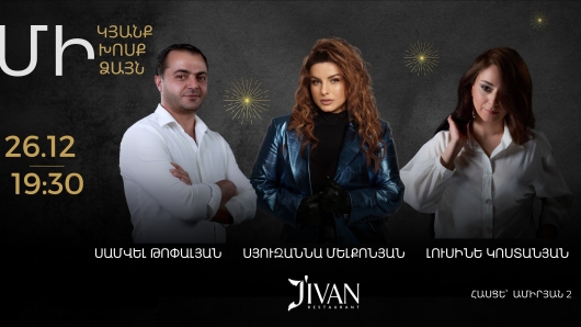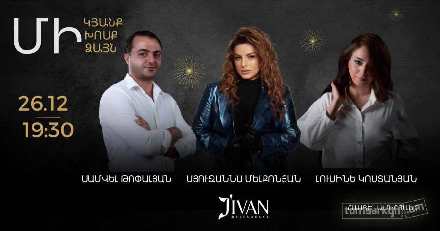 Դեկտեմբերի 26-ին ժամը՝ 20:30-ին, Սամվել Թոփալյանը, Լուսինե Կոստանյանը, Սյուզաննա Մելքոնյանը և Կարեն Անանյանը Ձեզ կպարգևեն տպավորիչ երեկո :