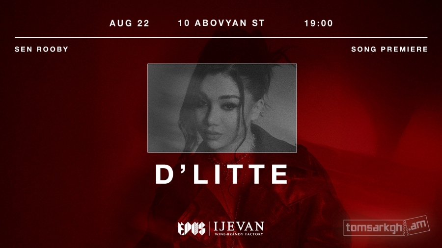 Օգոստոսի 22-ին, 19:00 երեկոն կբացի Sen Rooby-ն, իսկ 21:00-ից կգա նա՝ D’Litte կարմի՜ր, սիրո խոստումով և նոր պրեմիերա Ձեզ ներկայացնելու սպասումով: