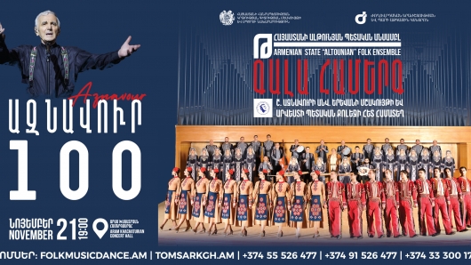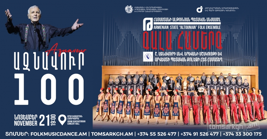 Folk Music and Dance National Center’s The Armenian State Ensemble "Altounian" will perform a concert called "AZNAVOUR 100", which will be dedicated to the 100th anniversary of Charles Aznavour.