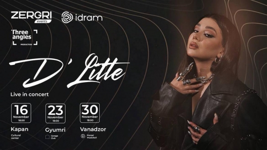 "Не упусти возможность насладиться уникальным концертом D’Litte 30 НОЯБРЯ в Ванадзоре.Приходи за незабываемыми эмоциями и стань частью самых ярких моментов вечера.Мы ждем именно тебя"
