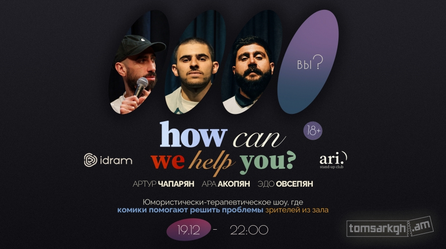 Юмористическо-терапевтическое шоу, в котором комики решают проблемы зрителей из зала. На сцене:Артур Чапарян, Эдо Овсепян, Ара Акопян. Размещение гостей осуществляется в порядке живой очереди 2. Если вы опоздали на 20 минут и более вам придется сесть на оставшиеся свободные места, не зависимо от купленного вами билета
