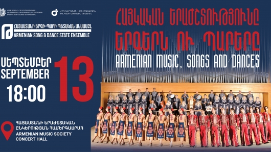 Ժողովրդական երաժշտության և պարի ազգային կենտրոնի Հայաստանի երգի-պարի պետական անսամբլը հանդես կգա «Հայկական երաժշտությունը, երգերն ու պարերը» համերգային ծրագրով:
