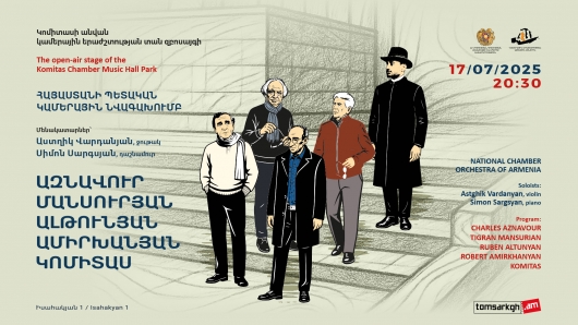 On July 17 at 8:00 PM, at the open air stage in the park of the Komitas Chamber Music Hall, the National Chamber Orchestra of Armenia invites you to enjoy the beautiful and emotional works of renowned Armenian composers under the Yerevan sky - music filled with warm memories.