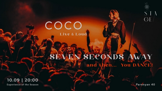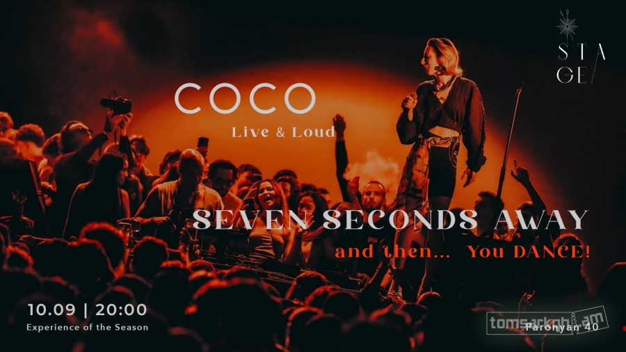 Հանդիպում ենք սեպտեմբերի 10-ին` The Stage-ում, վայելելու միջազգային ճանաչում ունեցող և բոլորի կողմից սիրված հիթերը՝ այդ թվում՝ «7 Seconds Away», «Voyage, Voyage» և այլ ստեղծագործություններ ֆրանսիայից ժամանած Coco & The Club Band խմբի կատարմամբ: