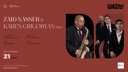 Նոյեմբերի 21-ին Զեյդ Նասերը համերգով հանդես կգա Հայաստանի պետական ջազ նվագախմբի դահլիճում՝ փայլուն երաժիշտներ Կարեն Գրիգորյանի (դաշնամուր), Միխայիլ Ֆոմինխի (կոնտրաբաս) և Հարություն Հարությունյանի (հարվածային գործիքներ) հետ։