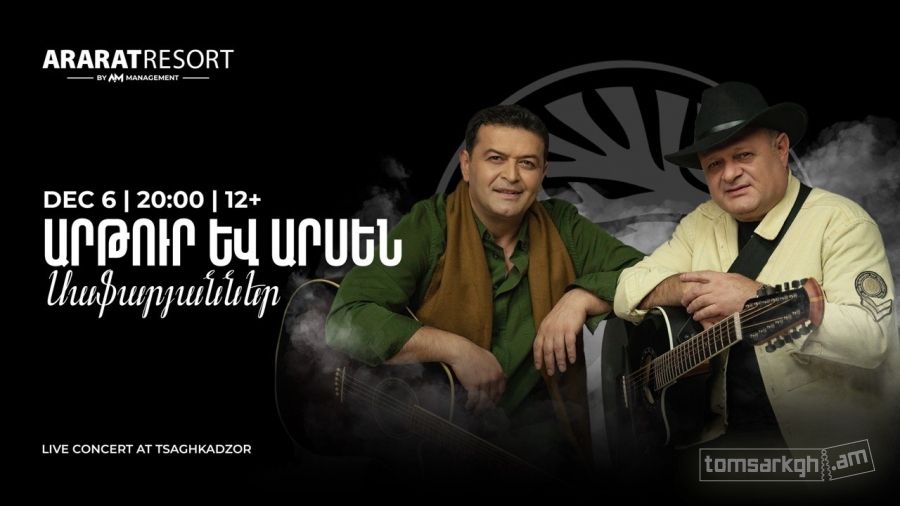Արթուր և Արսեն Սաֆարյանների համերգային երեկոն Ծաղկաձորի Ararat Resort-ում։ Մեկնարկը՝ 20:00, սպորտային հագուստով մուտքը արգելվում է, մուտքի մոտ հյուրերին սպասվում է հյուրասիրություն։