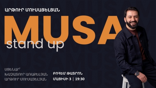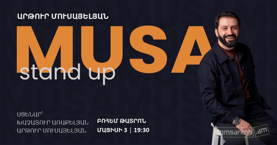 Արթուր Մուսայելյանի առաջին` Մուսա սթենդ ափ կատակերգությունը ներկայացնում է ոչ միայն կենսագրական հումոր, այլև անդրադառնում է ընդհանրական, բոլորիս վերաբերող թեմաների, փորձելով կատակների ու նմանակումների միջոցով բարձրաձայնել դրանք և տալ յուրօրինակ մոտեցում։