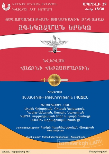 Ցեղասպանության 100-ամյակին ընդառաջ ոգեկոչման երեկո՝ նվիրված Հաճընի հերոսամարտին: