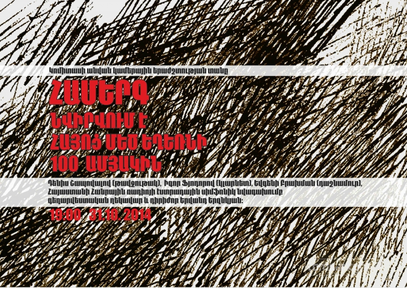 Համերգը նվիրվում է Հայոց Մեծ Եղեռնի 100 ամյակին:
