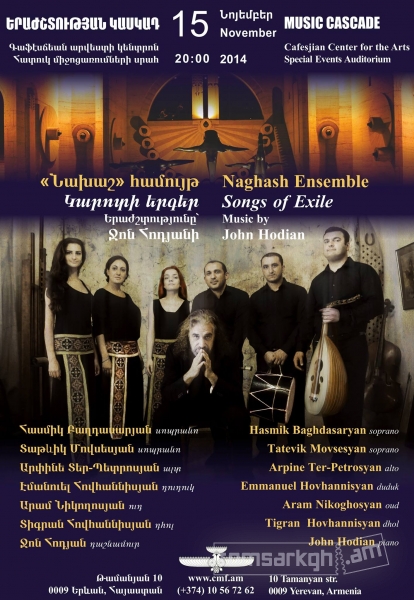 Հասմիկ Բաղդասարյան` սոպրանո, Տաթևիկ Մովսեսյան` սոպրանո, Արփինե Տեր-Պետրոսյան` ալտ, Էմանուել Հովհաննիսյան` դուդուկ, Արամ Նիկողոսյան` ուդ, Տիգրան Հովհաննիսյան` դհոլ, Ջոն Հոդյան` դաշնամուր