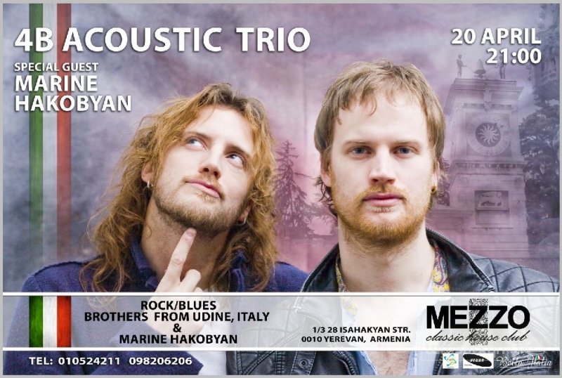 Ապրիլի 20- ին` ժամը 21:00- ին Մեցցո ակումբում հանդես կգա Իտալիայից ժամանած 4B Acoustic Trio- ն:
