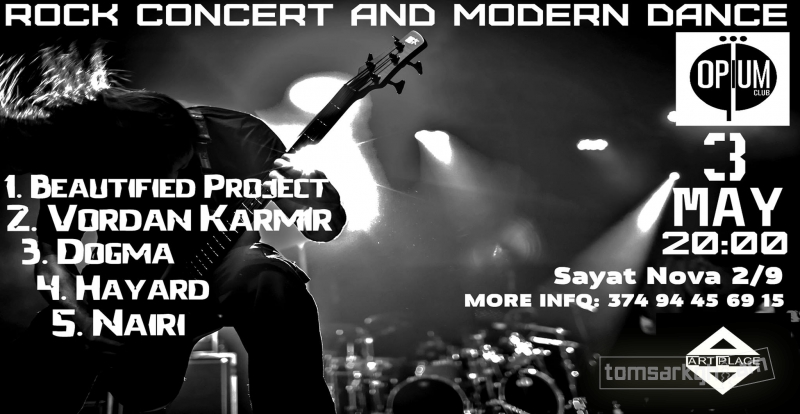 Opium club- ը և Art Place- ը ներկայացնում են 1 օր և 5 առաջատար ռոք խմբերը մեկ բեմում համատեղ, մնջախաղը պարային բեմադրությամբ: