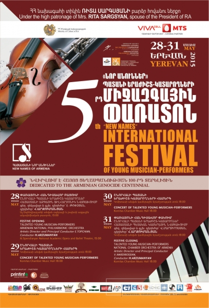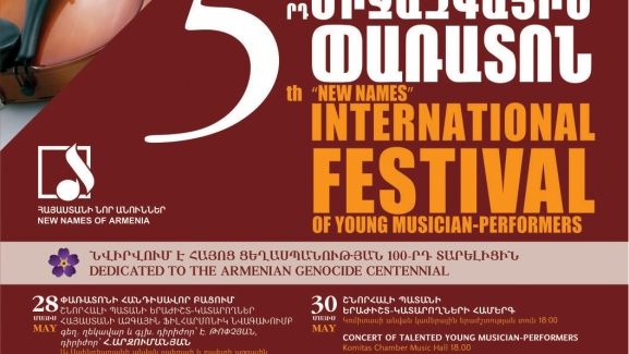 Մայիսի 28- ին՝ ժամը 15:00- ին, Օպերայի և բալետի ազգային ակադեմիական թատրոնում տեղի կունենա Հայաստանի «Նոր Անուններ» պատանի երաժիշտ- կատարողների 5- րդ միջազգային փառատոնի բացման համերգը: