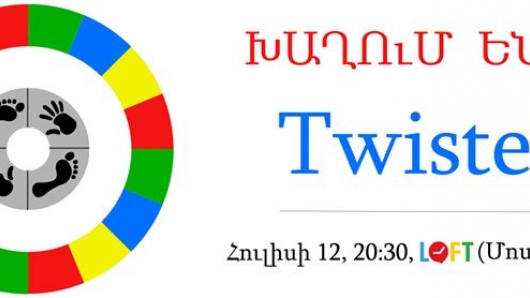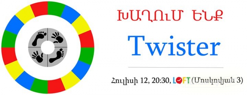 Հուլիսի 12-ին՝ ժամը 20:30-ին արի՜ Լոֆթ՝ մասնակցելու Twister խաղի առաջնությանը: Եթե նույնիսկ առաջին անգամ ես խաղում այն, հոգ չէ, մենք կսովորեցնենք խաղի կանոնները և դու կունենաս հնարավորություն հաղթելու: