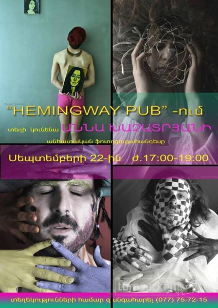 Սեպտեմբերի 22-ին ''Hemingway Pub"-ում տեղի կունենա Աննա Խաչատրյանի և Լիլիթ Միկոյանի համատեղ Ֆոտոցուցահանդեսը: