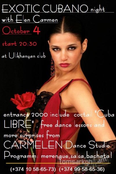 Երեկոյի ընթացքում սպասվում են անվճար պարի դասեր և այլ անականկալներ " Carmelend" պարային ստուդիայի կողմից: