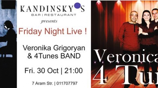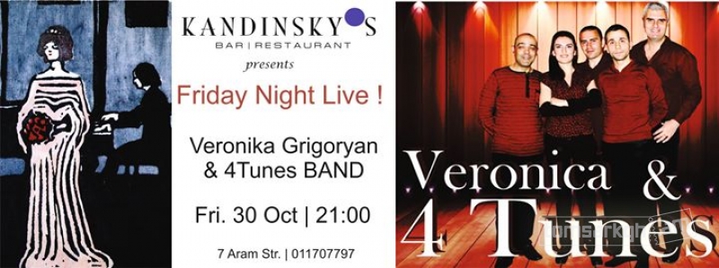 Վերոնիկա Գրիգորյանը 4Tunes band-ի հետ կենդանի համերգով հանդես կգա Kandinsky's բեմում: