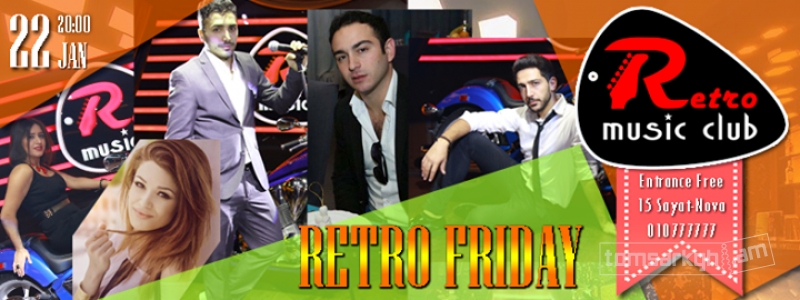 Սիրով հրավիրում ենք Ռետրոյի Ուրբաթօրյա երեկոյի մեր երիտասարդ երգիչների մասնակցությամբ՝ ռետրո կատարումներ, պարային բարձր տրամադրություն, հիանալի խոհանոց։
