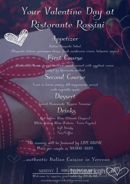 Join us to celebrate St. Valentine's day at Rossini Restaurant.