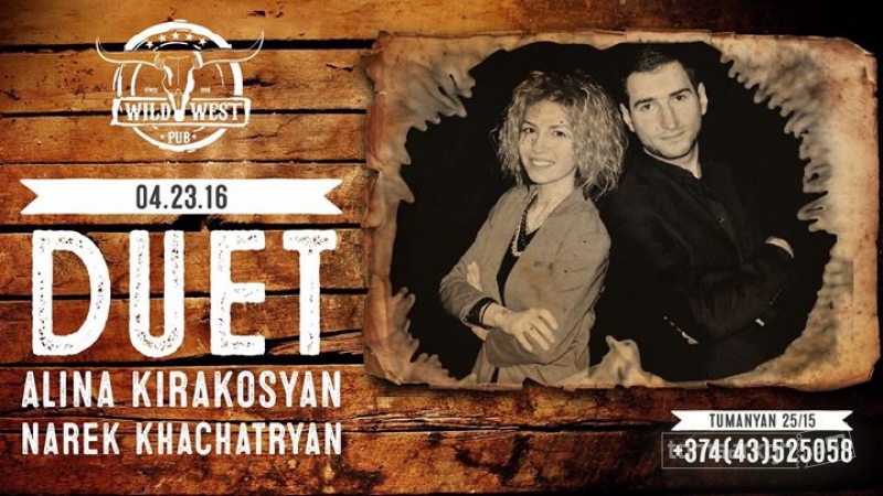 Անցկացրեք հաճելի շաբաթ երեկո Wild West-ում։ Այս անգամ մեզ մոտ հյուր են Ալինա Կիրակոսյանը և Նարեկ Խաչատրյանը։ Մուտքն ազատ է: