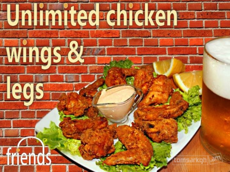 Չորեքշաբթի հանդիպում ենք Friendsbar-pub-ում ընկերների հետ՝ ԱՆՍԱՀՄԱՆԱՓԱԿ ու համեղ հավի թևիկներ ու բդիկներ ուտելու, խմելու գարեջուր ու խաղալու սեղանի ֆուտբոլ: