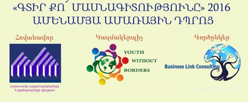 «Երիտասարդներ առանց սահմանների» հիմնադրամը, «Բիզնես Լինկ Կոնսալթինգ» ընկերության և «Հայաստանի Արդյունաբերողների և Գործարարների Միության» հետ համատեղ, կազմակերպում է «Գտիր քո՜ մասնագիտությունը» 2016 Ամենամյա Ամառային Դպրոցը: