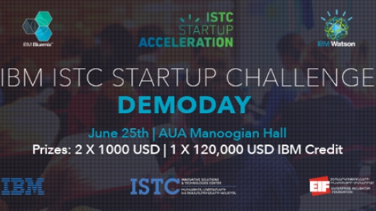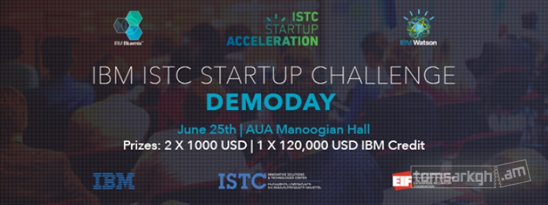 IBM Innovative Solutions and Technologies Centerը հրավիրում է բոլորին IBM ISTC Startup Challenge-ի ավարտական ծրագրերի ներկայացմանը։ 10 շաբաթ տևած մրցույթի արդյունքները մեկ օրվա ընթացքում։ 6 թիմեր կներկայացնեն իրենց ծրագրերը և լավագույնները կստանան 1000 ԱՄՆ դոլարին համարժեք մրցանակ, իսկ մեկ լավագույն թիմ կստանա 120,000 ԱՄՆ դոլարին համարժեք IBM ծառայություններից օգտվելու հնարավորություն։