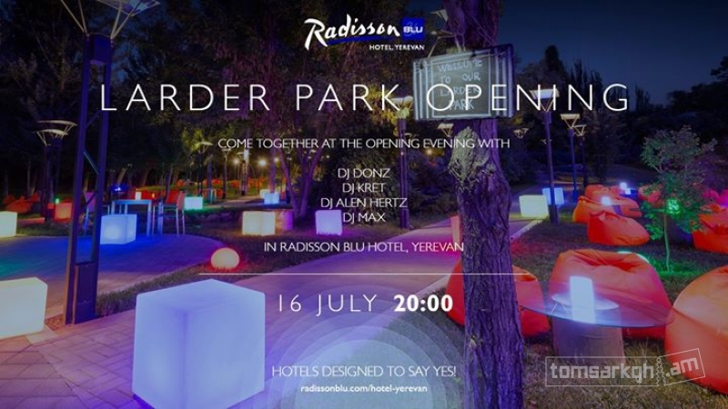 Radisson Blu Hotel, Yerevan is excited to host the opening party of our Larder Park. It's an iconic atmosphere of beautiful music with greatest DJs in the city.