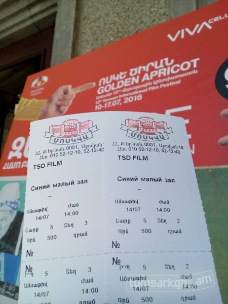 Tickets can be obtained form Moscow Cinema ticket office (price of one ticket is 500 AMD).