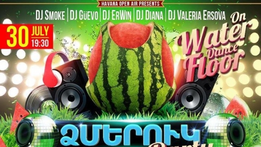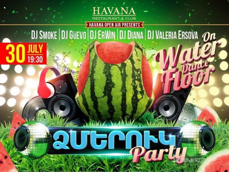 Հուլիսի 30-ին՝ Հավանայի ջրային պարահրապարակում «Ձմերուկ» փարթի է։ Ողջ երեկոյի ընթացքում՝ DJ Smoke, DJ Guevo ,DJ Erwin, DJ Diana և DJ Valeria Ershova ։ Ձեզ սպասվում է ձմերուկակերության մրցույթներ, հատուկ հյուրասիրություն բոլոր հյուրերի համար և անսահման լավ ու պոզիտիվ տրամադրություն : Համոզվիր, որ ձմերուկը միայն ուտելու համար