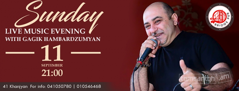 Այս անգամ Գագիկ Համբարձումյանի կատարումները կարող եք վայելել նաև կիրակի օրը, անցկացնելով Բրիջում ուրախ երեկո։