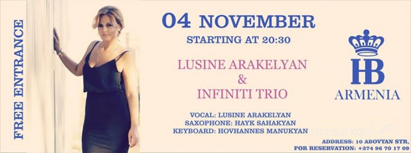 Ուրբաթ՝ ժամը 20:30-ից սկսած HB Armenia-ում վայելելու ենք Lusine Arakelyan & Infiniti Trio-ի կատարումները: Հրավիրում ենք բոլորին բարձրորակ երաժշտություն լսելու: