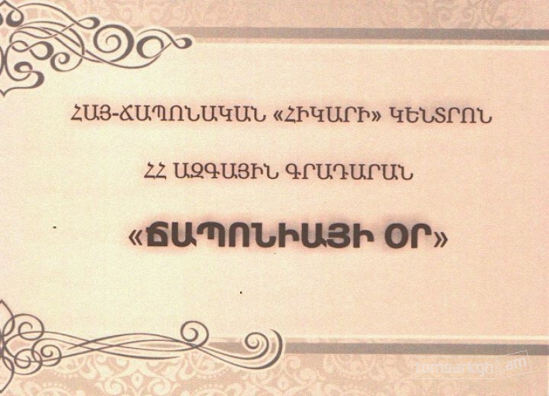 Հրավիրում են ներկա գտնվել «Ճապոնիայի օր» մշակութային ծրագրին, որը տեղի կունենա նոյեմբերի 22-ին ժամը 14:30-ին Հայաստանի Ազգային գրադարանում: