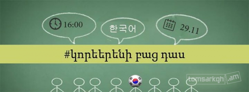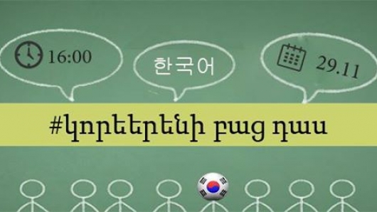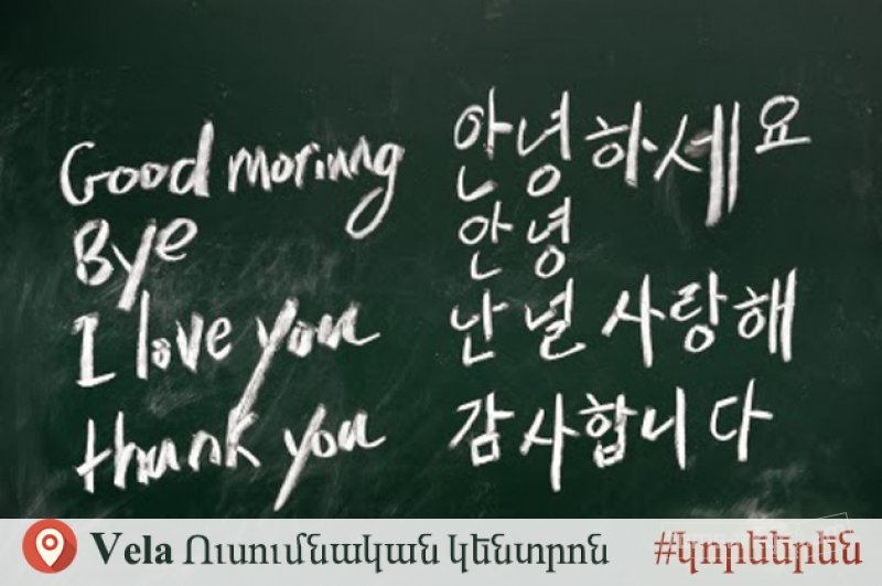 Սիրով հրավիրում ենք նոյեմբերի 29-ին, 16:00-ին Vela ուսումնական կենտրոն` կորեերենի դասի: Դասը նախատեսված է սկսնակների համար